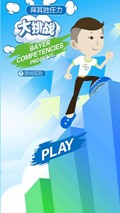 首頁是一個身著拜耳LOGO服裝的卡通小人做全市狀,點擊“PLAY”后進入游戲,游戲頁通過點擊頁面進行人物的左右跳轉,用戶要收集能量(即核心勝任力)并且躲 避障礙,當八個能量球收集完畢后使右通過此關卡,進入第二關,第二關同第一關一樣要收集八個能量球,在游戲上加大了難度(加速)收集完畢,游戲通關。